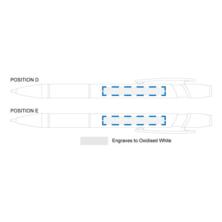 Decoration Area | Pad Print Positions D & E - 45mm x 6mm |Screen Print Position A - 45mm x 12mm (one colour)|Laser Engraving Positions D & E - 45mm x 6mm |