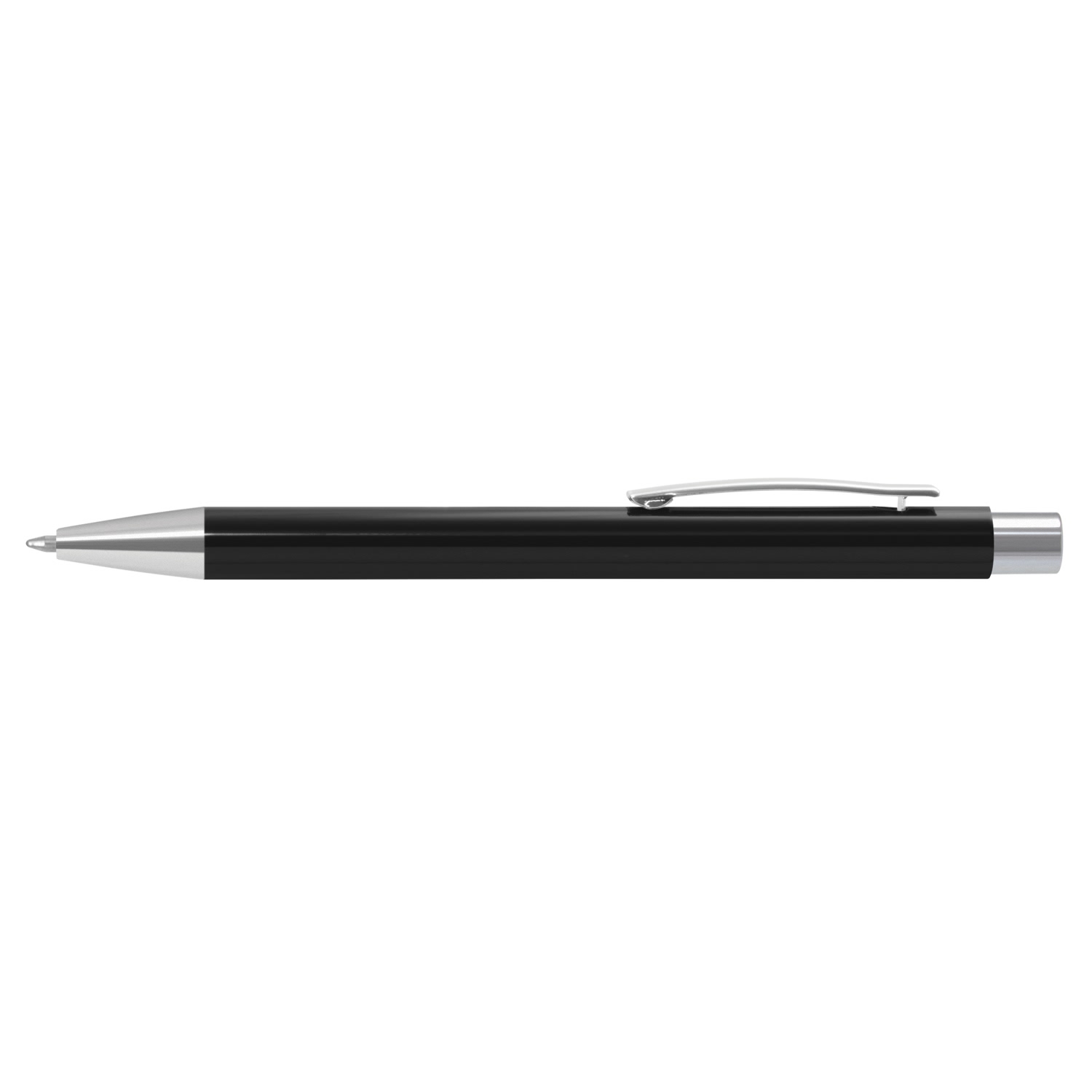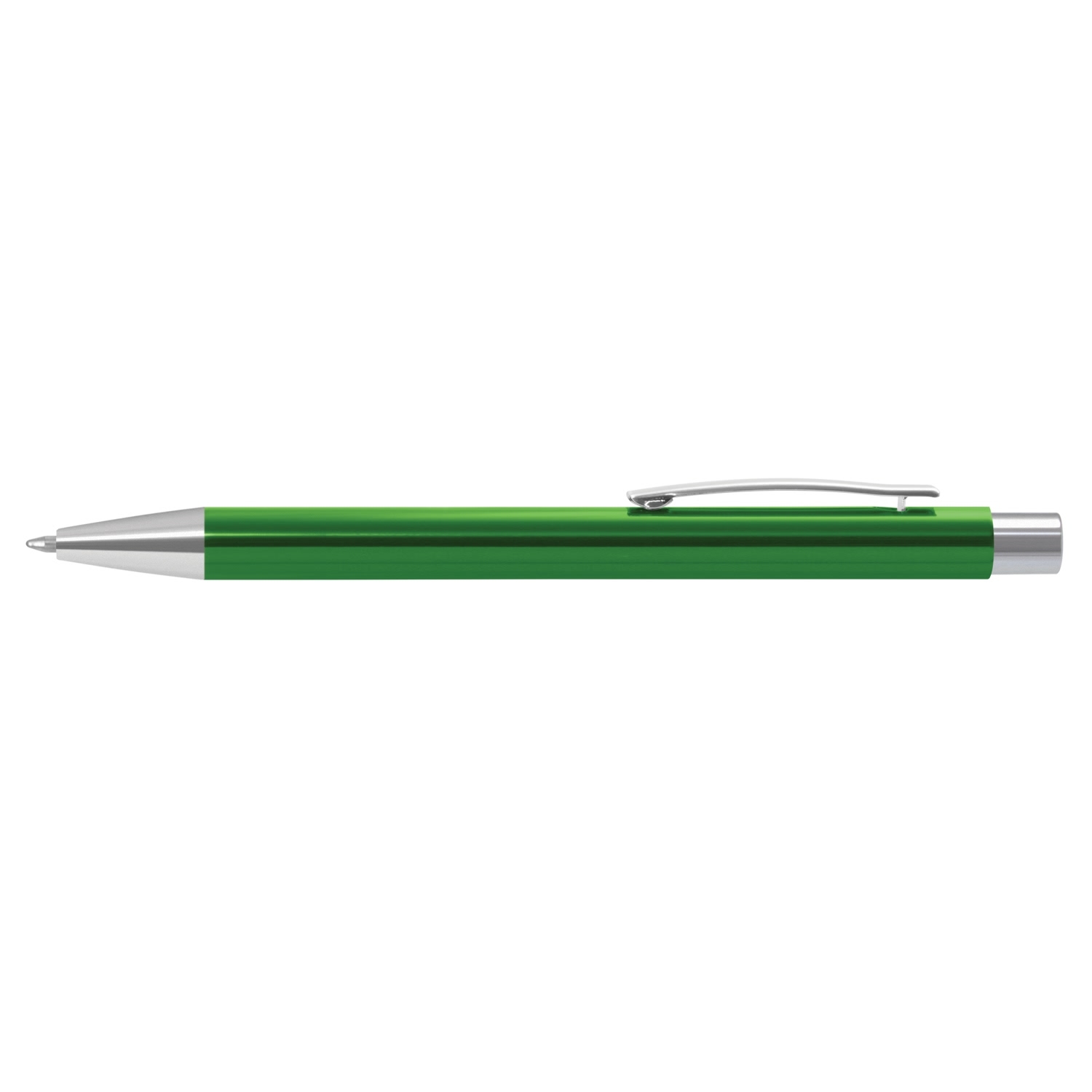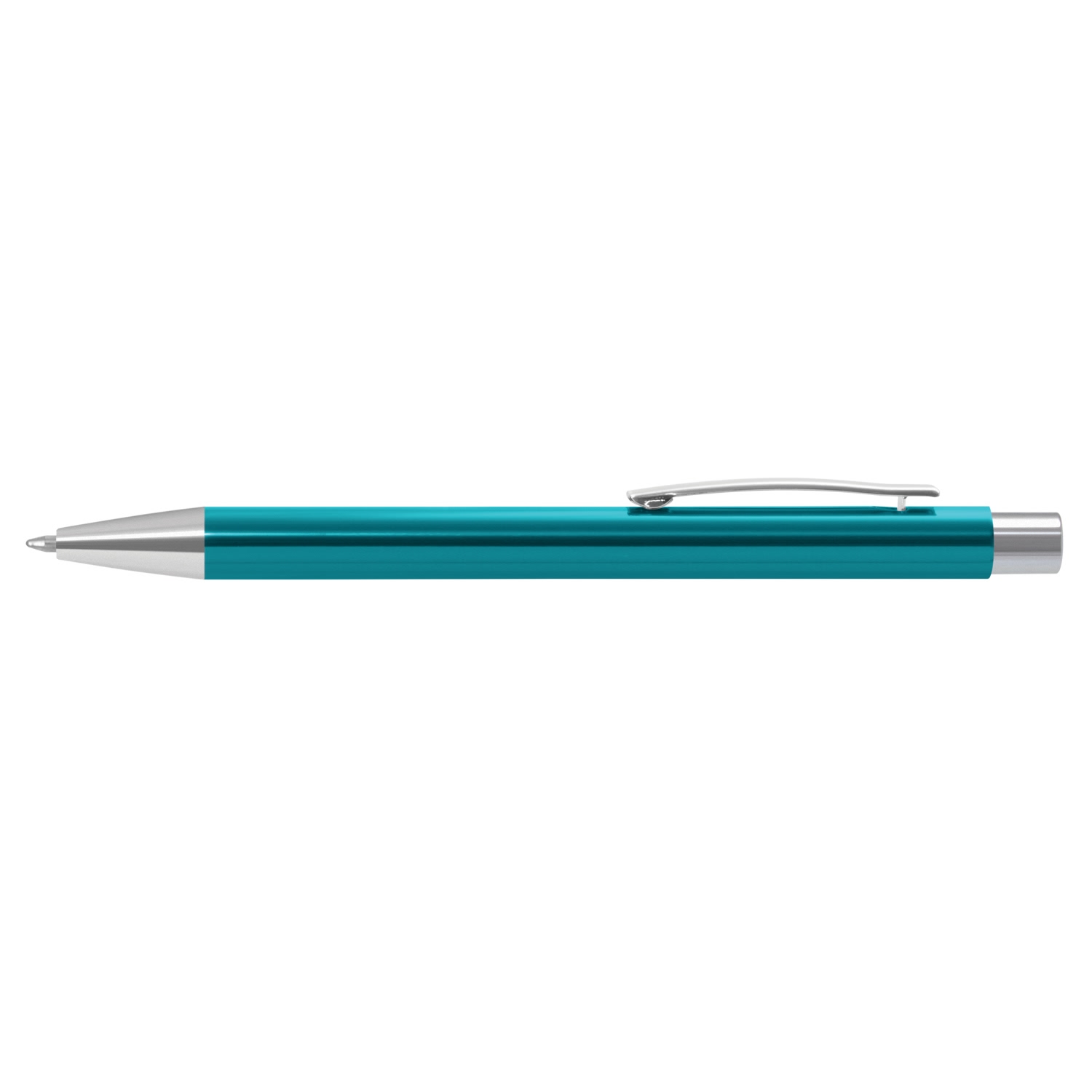 A stylish retractable ballpen made with aluminium and designed with shiny anodised coloured barrels and a matt anodised silver barre all of which have shiny chrome accents. It has a black large volume refill with 1200 metres of writing ink for the longer and better writing experience. It laser engraves to an oxidised white colour. These pens can be presented in an optional black velvet sleeve or a gift box.