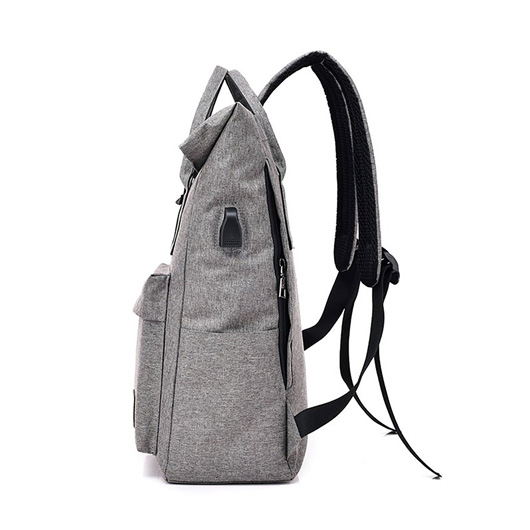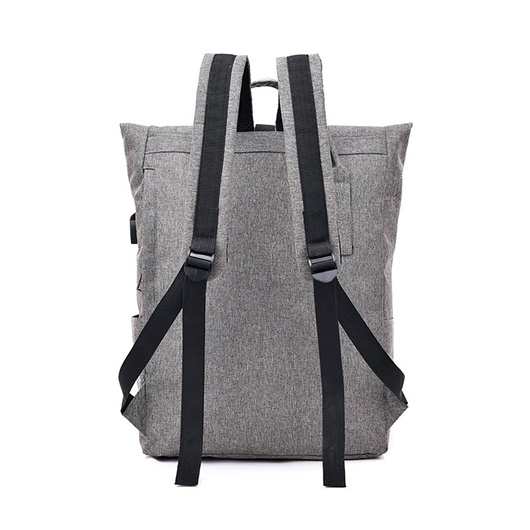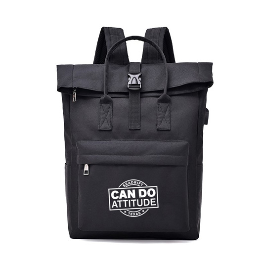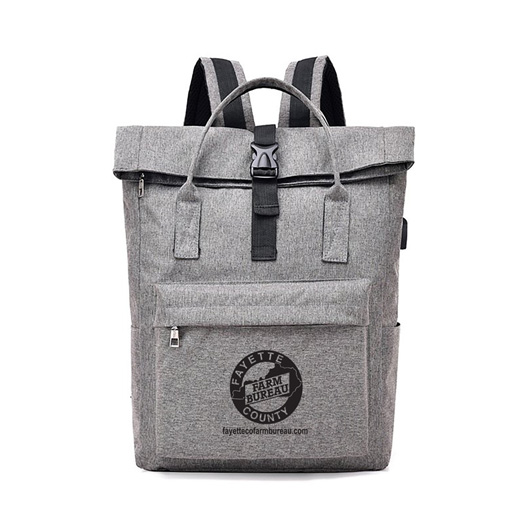 This stylish laptop backpack will set your brand apart from the others. It is made from a high-quality polyester and has one front zippered pouch with two internal compartments. One compartment is for laptops and other devices with a Velcro closure strap and thick padding to protect the devices. The bag also includes a second small pouch, perfect for keys and other small items. It also features a USB charging port with a charging cable attached and adjustable shoulder straps. The bag has a zip closure top, and the top part can be folded to make the bag smaller, and two handles are available for you to carry the bag by hands.